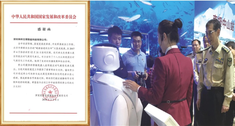 神州云海研發的艾娃客服機器人是一款室內服務型機器人,它